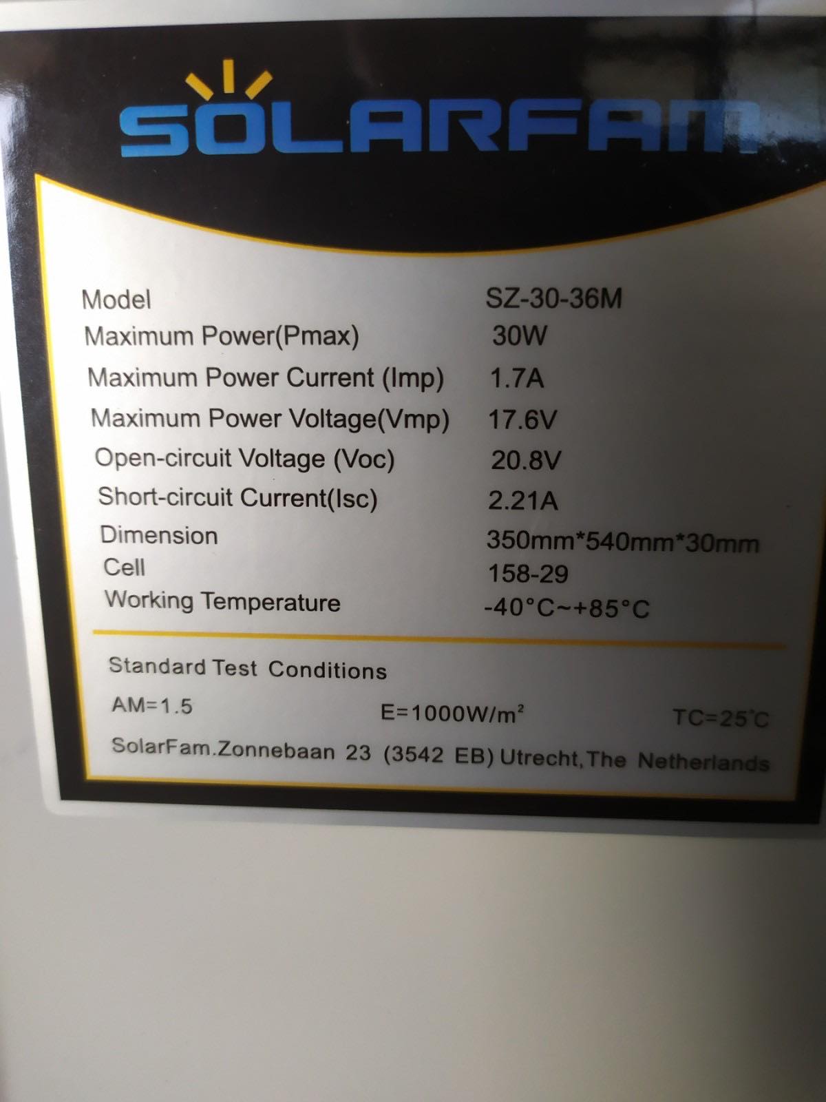Φωτοβολταικό πάνελ μονοκρυσταλικό 30watt 12v SOLARFAM monocrystaline