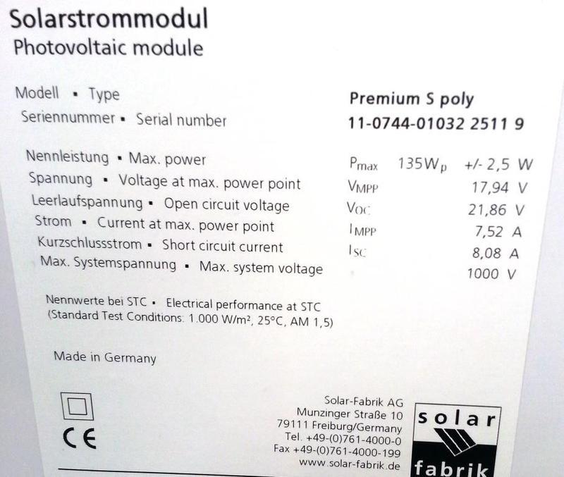 Φωτοβολταικό πάνελ Solar 135w 12V poly Used solarfabrik germany