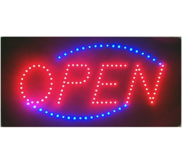 Φωτεινή επιγραφή με υψηλής φωτεινότητας Led με την λέξη "OPEN", διαστάσεις panel 26 x 50cm.